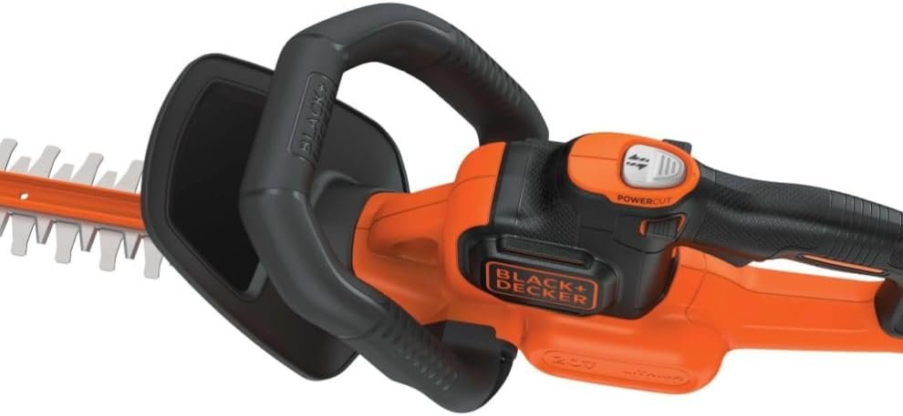 The BLACK+DECKER 40V MAX Cordless Hedge Trimmer (Model LHT341FF) combines power and precision with a 24-inch dual-action blade and cordless 40 V lithium-ion battery system. With the-POWERCUT technology, it slices through jams at the push of a button, efficiently cutting branches up to ¾ inch thick and trimming up to about 6,000 sq. ft. of hedge on one charge. Its ergonomic soft-grip handle reduces vibration and fatigue during extended use. This battery-and-charger-included kit brings dependable cordless convenience to your landscaping tasks—upgrade your hedge-trimming routine today!