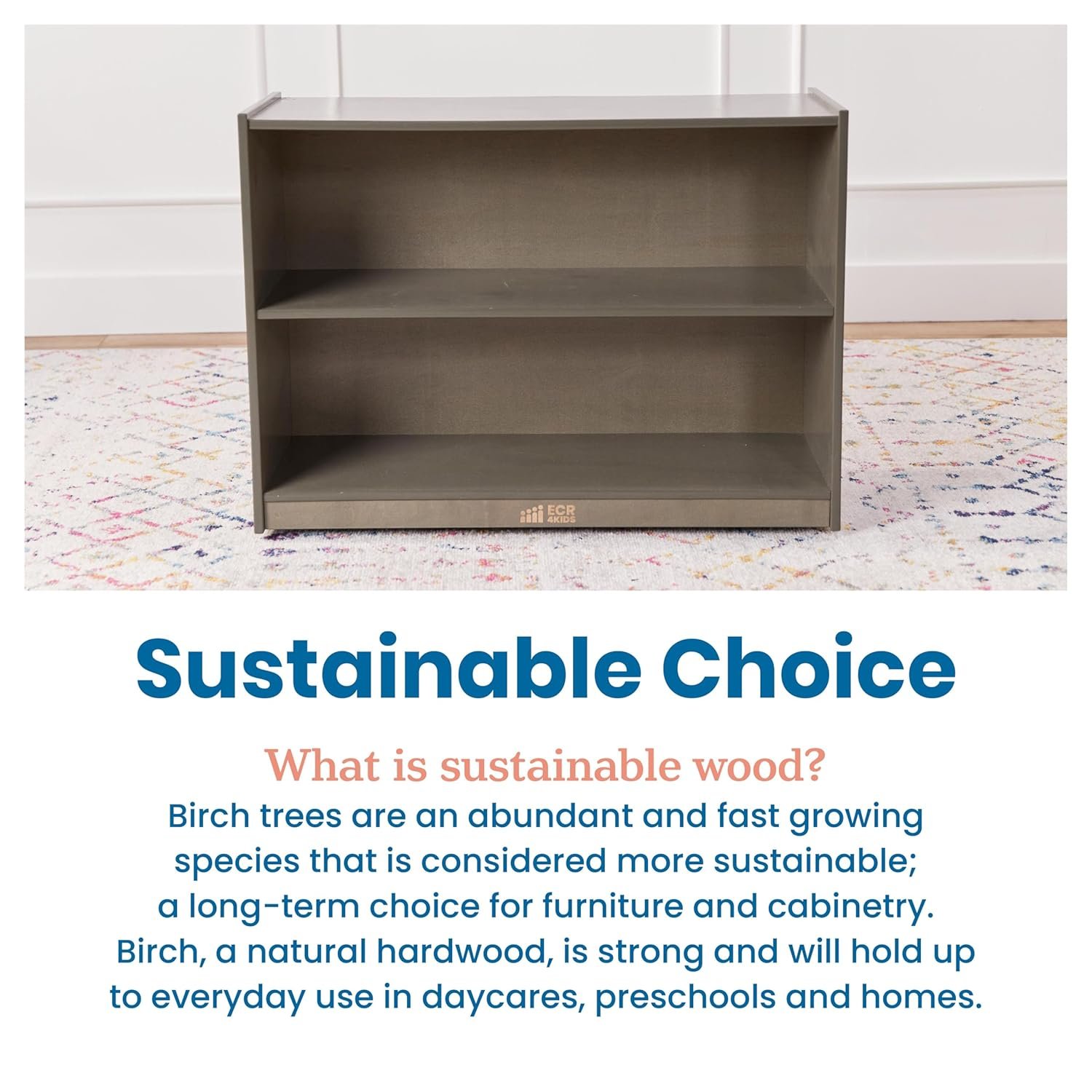 Organize any space with the ECR4Kids 2-Shelf Mobile Storage Cabinet, designed for classrooms, playrooms, or bedrooms. Crafted from durable birch plywood with a sleek grey wash finish, it features two spacious shelves and smooth-rolling casters for easy mobility. Keep toys, books, and supplies neatly stored while enhancing your space—click to bring efficient, stylish storage into your home or classroom today.