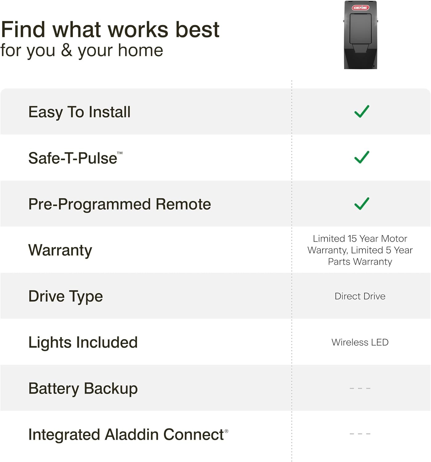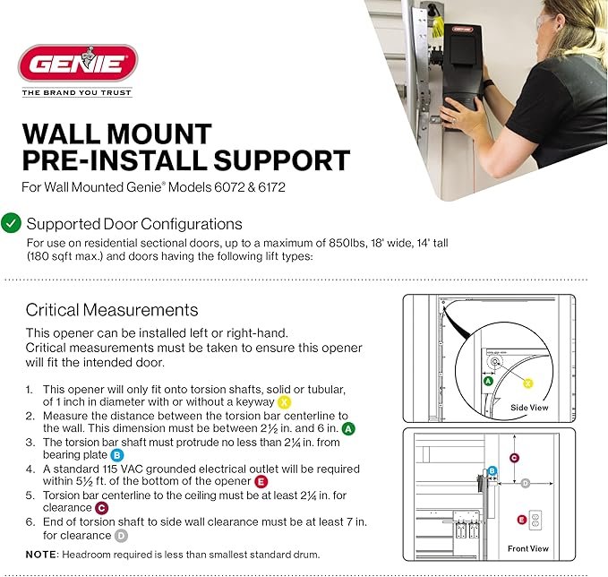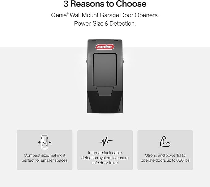 Upgrade your garage with the Genie 6072H-O Residential Wall Mount Garage Door Opener, designed for reliable and space-saving operation. Its wall-mounted design keeps your ceiling clear, while the powerful motor ensures smooth, quiet lifting of your garage door. Compatible with smart home systems for convenient remote access, this opener delivers safety, efficiency, and durability. Experience modern garage convenience—click to secure yours today.