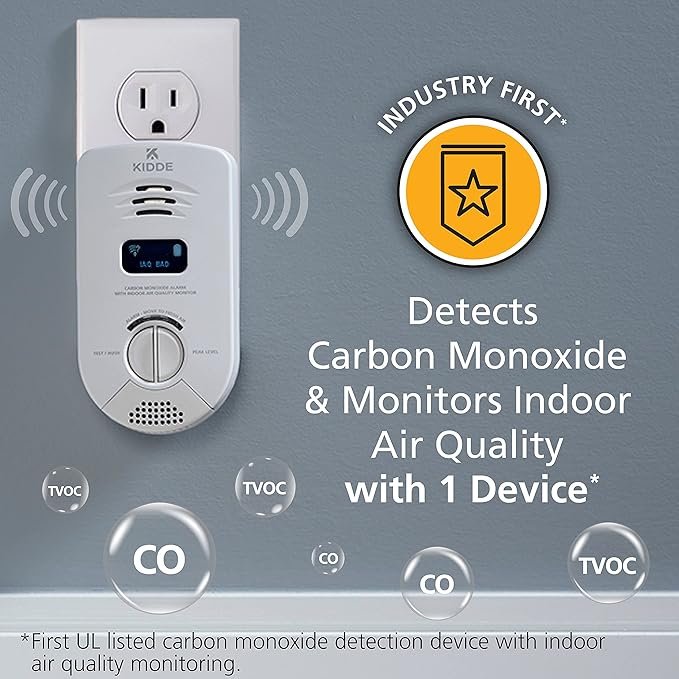 The Kidde Smart Carbon Monoxide Detector & Indoor Air Quality Monitor keeps your home safe and healthy by detecting carbon monoxide levels and monitoring air quality in real time. With WiFi connectivity, Alexa compatibility, and voice or app alerts, you’ll always stay informed of potential risks. Simply plug it in and enjoy smarter home protection — breathe easier with Kidde’s trusted safety technology.