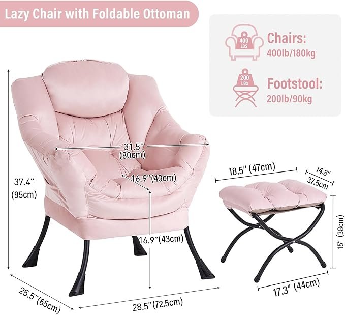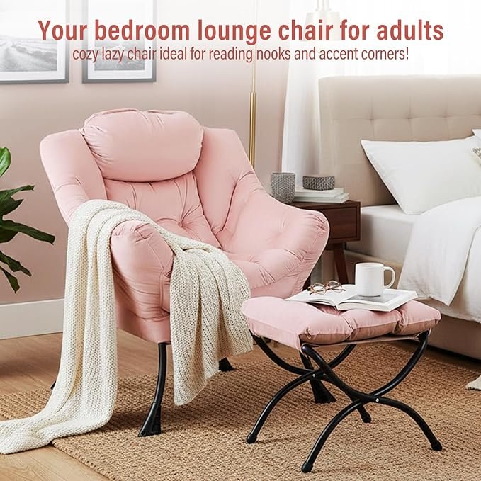 Pink Lazy Chair with Ottoman – Oversized Lounge Accent Chair for Bedroom & Living Room