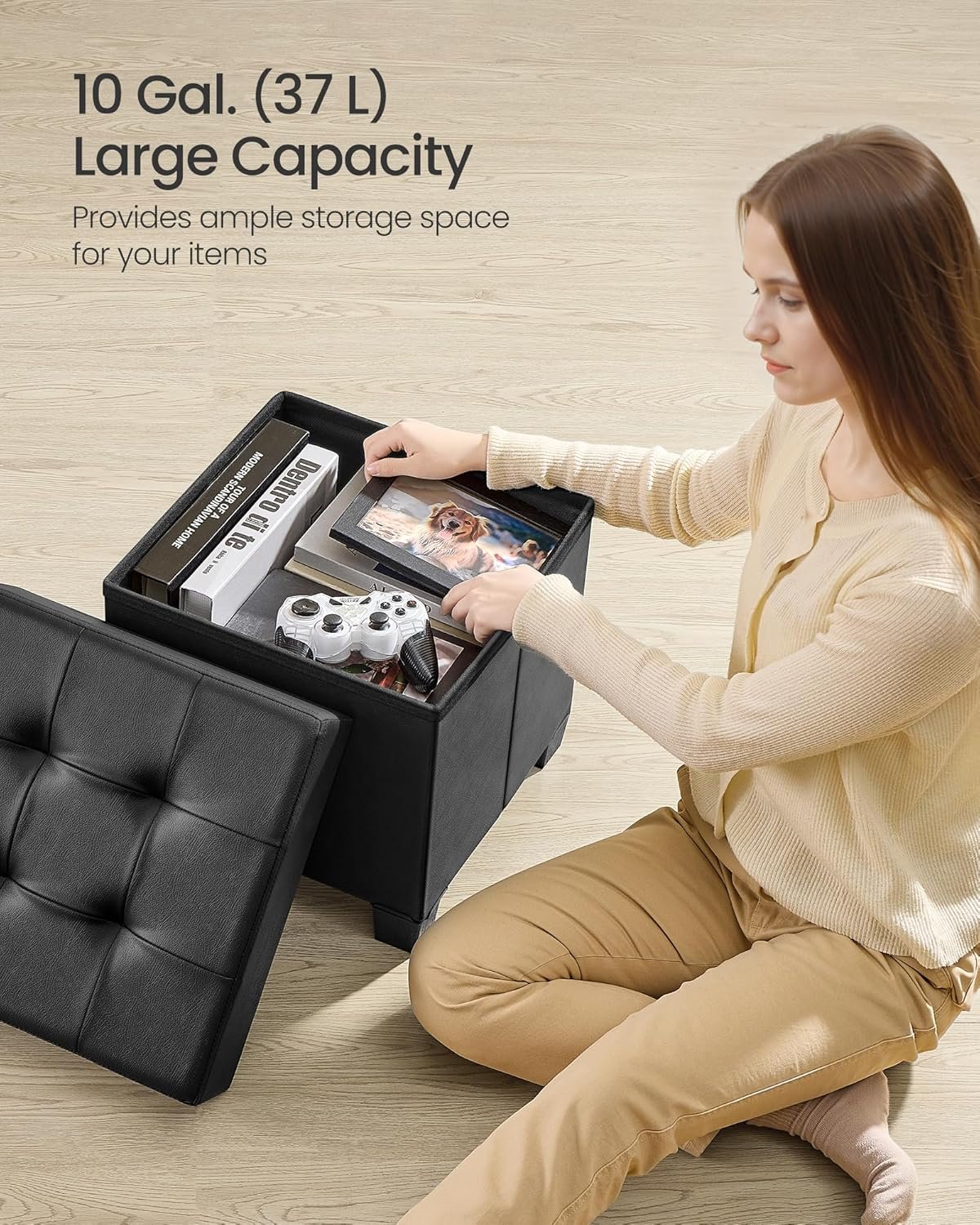 Enhance your living space with the SONGMICS Storage Ottoman, a versatile cube ottoman designed for style and functionality. Crafted with durable synthetic leather, this 10-gallon storage footstool keeps blankets, toys, and essentials neatly tucked away while providing a comfortable seat or footrest. Compact yet sturdy, it fits perfectly in bedrooms, living rooms, or dorms—an elegant solution for clutter-free, cozy living. Click to upgrade your home organization today!