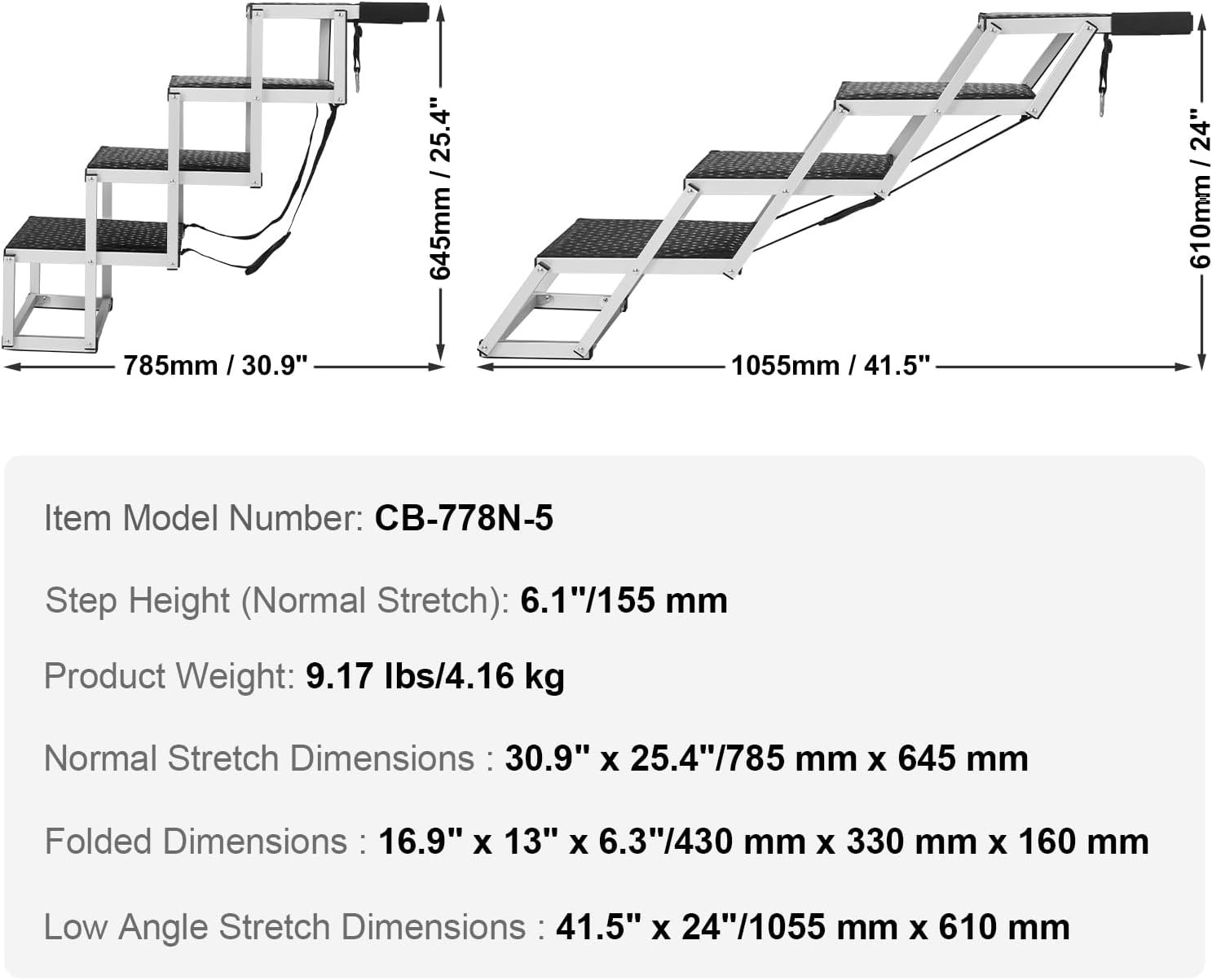 The nonslip surface and wide anti-slip steps provide stable footing, even in wet conditions, while the sturdy frame ensures secure climbing for elderly dogs, pets with mobility issues, or breeds prone to joint strain. Its foldable, portable design allows you to store it easily in your trunk and set it up in seconds wherever you go. Adjustable height and angle help fit various vehicle types, ensuring maximum comfort and safety for your pet.