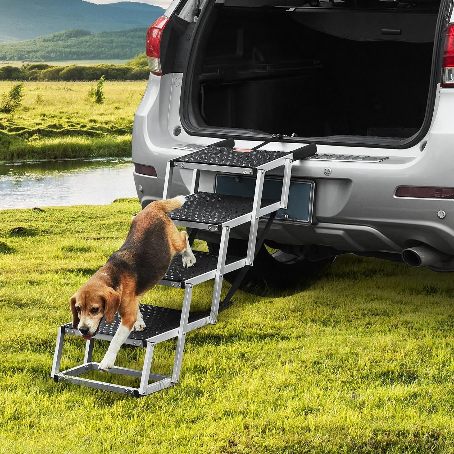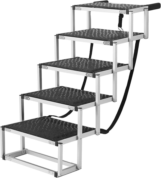 Make car travel easier and safer for your pet with the VEVOR 4-Step Folding Dog Car Ramp, designed for cars, SUVs, and trucks. Built from lightweight yet heavy-duty aluminum, it supports up to 250 lbs, making it ideal for small, medium, and large dogs.